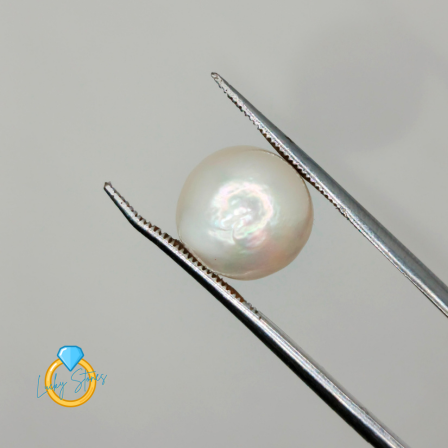 This Natural Pearl stone weighs 8.4 carat and is admired for its clean white tone and natural luster. The pearl has a smooth and polished surface that reflects light softly, giving it a calm and elegant appearance. Its natural formation makes each pearl unique in shape and shine.